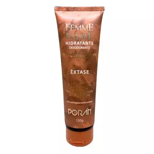 Descubra o poder do Hidratante Corporal Femme Fatale Extase da Porán, desenvolvido especialmente para quem busca uma pele macia, nutrida e com aquele toque de sedução que só um produto de alta qualidade pode proporcionar.